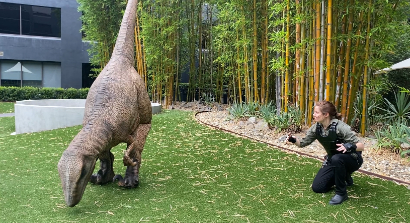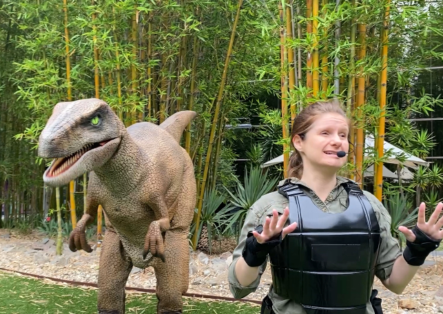 Unlike animatronic displays, this dinosaur behaves like a real animal, complete with lifelike movements, roars, and instincts. A dinosaur keeper in safety gear introduces the event before the 2.4m tall creature makes her dramatic entrance, stalking and snarling within her space.
